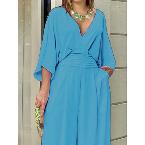 Per donna Normale Tuta Elegante Tinta unica Manica 3/4 Gamba larga Scollo a V Tasca Quotidiano Vacanza Vestibilità comoda Blu Nero Bianco Estate