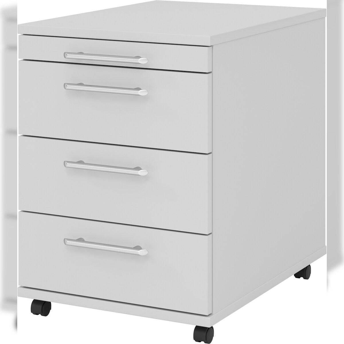 bümö basic Rollcontainer mit Schubladen, Container aus Holz in grau - Rollwagen für's Büro als Schreibtisch Unterschrank, Bürocontainer od.