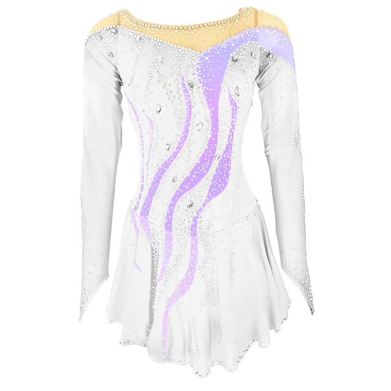 Figure Skating Dress Women's Girls' Ice Skating Dress White Patchwork Mesh High Elasticity Training Competition Skating Wear Classic Crystal / Rhinestone Long Sleeve Ice Skating Figure Skating