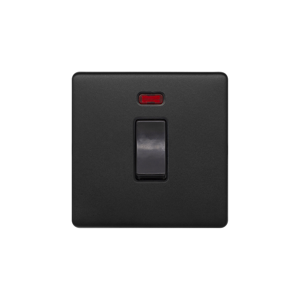 Soho Lighting Matt Black 45A 1 Gang Double Pole Switch & Neon Screwless