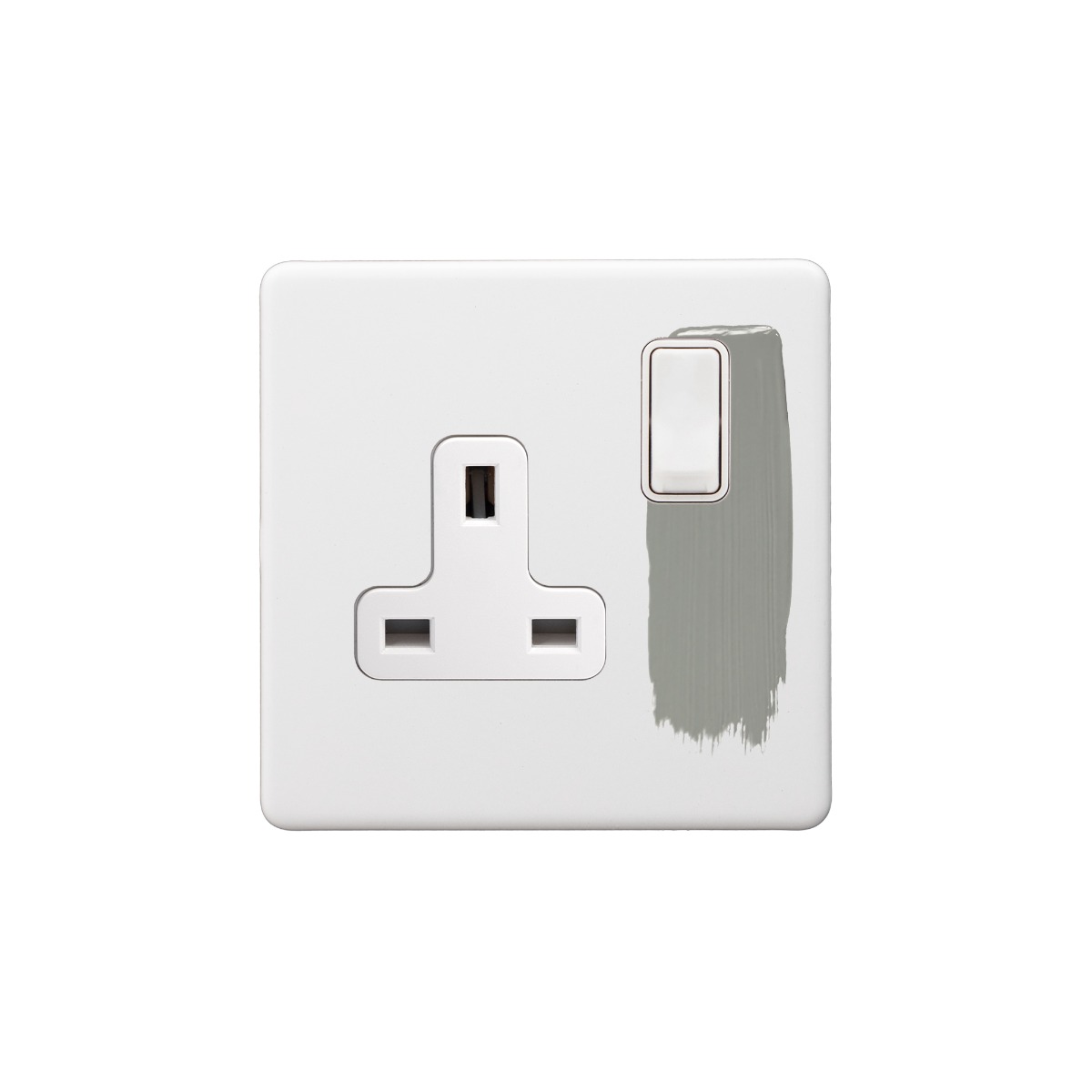 Soho Lighting Primed Paintable 1 Gang Socket 13A Double Pole with White Switch - Size: 86mm x 86mm x 4.5mm
