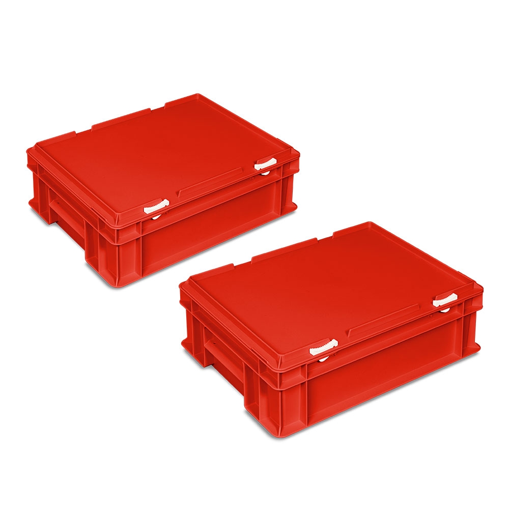 2x Euro-Deckelbehälter mit 6 Einsatzkästen, LxBxH 400x300x130 mm, rot