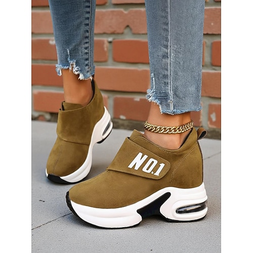 Burgunderrote Plateau-Sneaker mit Klettverschluss für Damen – sportliche High-Top-Schuhe mit Absatz, die die Körpergröße erhöhen und sich ideal für Spaziergänge und Reisen eignen.