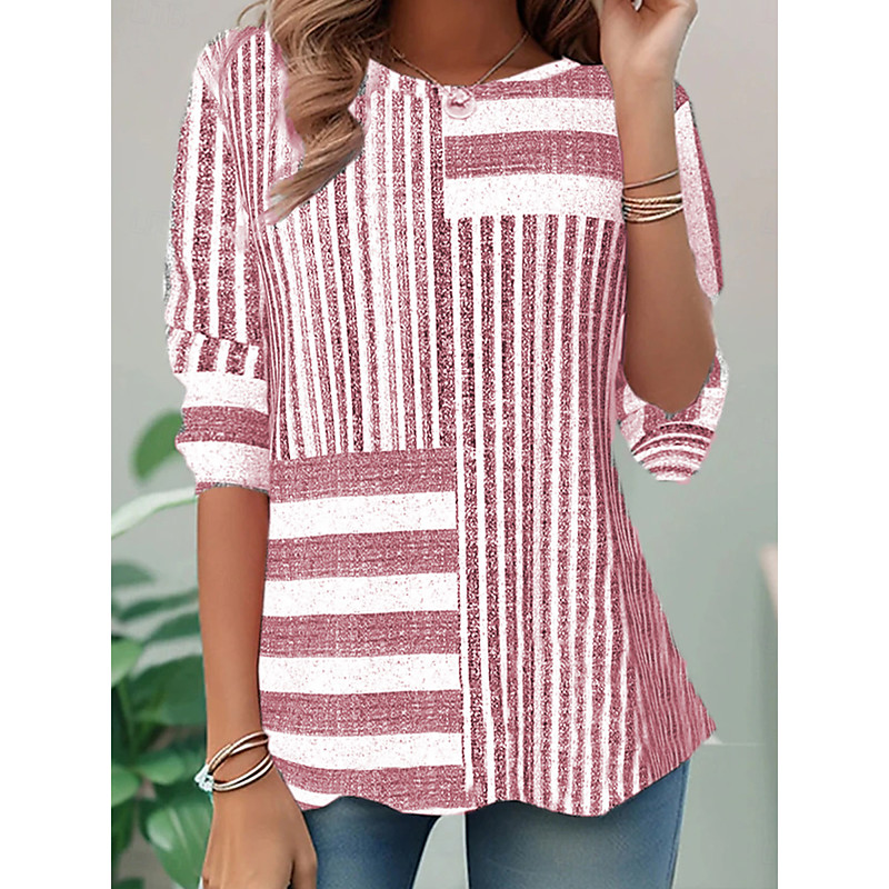 Women's T shirt Long Sleeve Casual Print Regular Tops Daily Pink Blue Gray Spring Fall Prefall