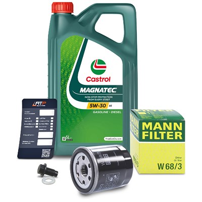 Mann-filter Ölfilter+Schraube+5 L Castrol Magnatec 5W-30 A5 [Hersteller-Nr. 10491833] für Toyota