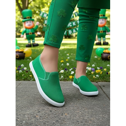 Grüne Damen-Slipper aus Canvas zum Hineinschlüpfen für den St. Patrick's Day – bequeme, lässige und vielseitige Sneaker für Paraden, Festivals und den Alltag