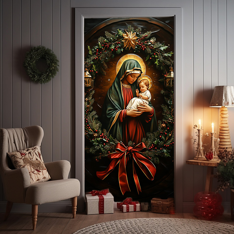 Christmas Door Decorations Door Covers Nativity Scene Xmas Door Tapestry Door Curtain Decoration Backdrop Indoor/Outdoor Door Banner for Front Door Farmhouse Nativity Story