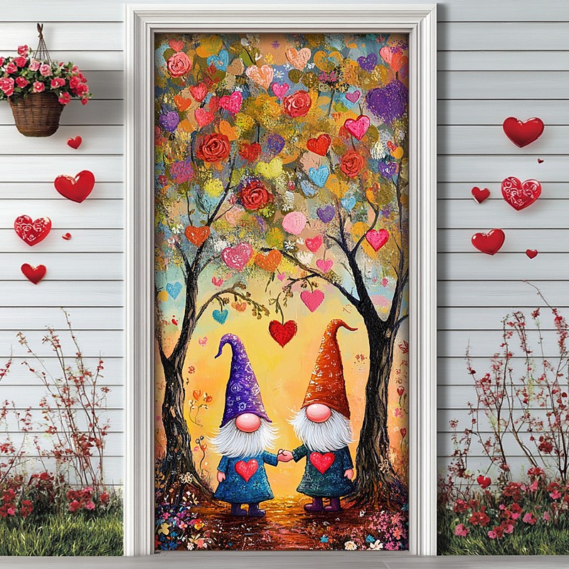 Valentine's Day Door Decorations Door Covers Garden Theme Door Tapestry Door Curtain Decoration Backdrop Indoor/Outdoor Door Banner for Front Door Farmhouse