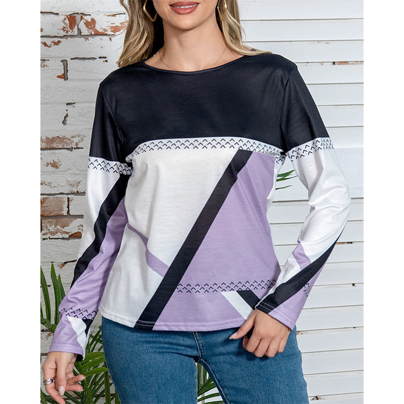 Women's Blouse Dressy Tops Geometric Color Block Plain Vintage Tropical Ladies Long Sleeve Crew Neck Regular Tops Work Daily Holiday Ruched Patchwork Draped Red Blue Purple Green Khaki Fall Winter