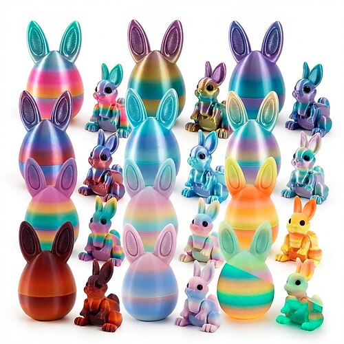3D-gedruckte Ostereier mit beweglichem Überraschungshasen, regenbogenfarbenes Überraschungsei, beweglicher Hase als Fidget-Spielzeug, Osterkorb-Füllung für Kinder, Preise für die Ostereiersuche,