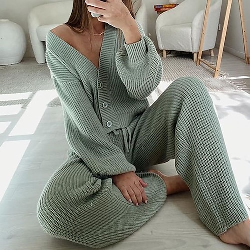 Per donna Attivo Streetwear Set di Pantaloni Bolero Top Manica Lunga Scollo a V Semplice Coulisse All'aperto Vacanza Quotidiano Azzurro cielo Verde Cachi Autunno Vestibilità regolare