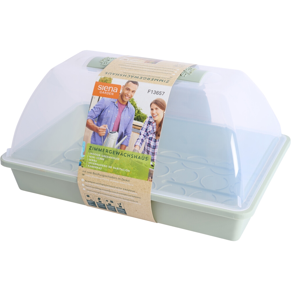 Siena Garden OSLO Zimmergewächshaus 38x24x18 cm, Anzuchtschale aus Polypropylen in oliven grün, Haube aus Polypropylen in transparent