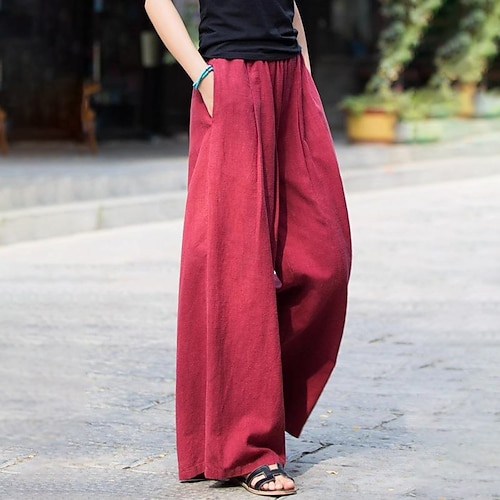 Per donna Pantaloncini in cotone e lino Pantaloni ispirati al lino Pantaloni in cotone e lino Streetwear Casual Lunghezza intera Naturale Semplice Tasca Elastico in vita All'aperto Confortevole