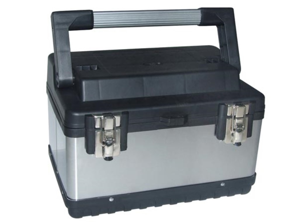 Perel Werkzeugkasten, Edelstahl, Aluminiumgriff, herausnehmbarer Werkzeugträger, Metallverschlüsse, 380 x 270 x 225 mm