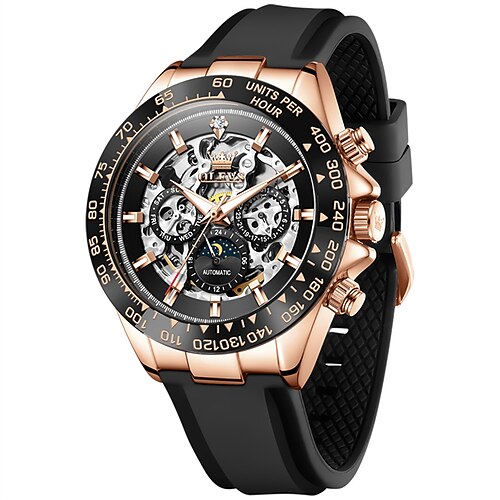 Die neue Olevs-Herren-Business-Uhr aus Silikon mit leuchtendem Kalender und Mondphasenanzeige ist eine multifunktionale vollautomatische mechanische Uhr und eine modische, lässige, wasserdichte