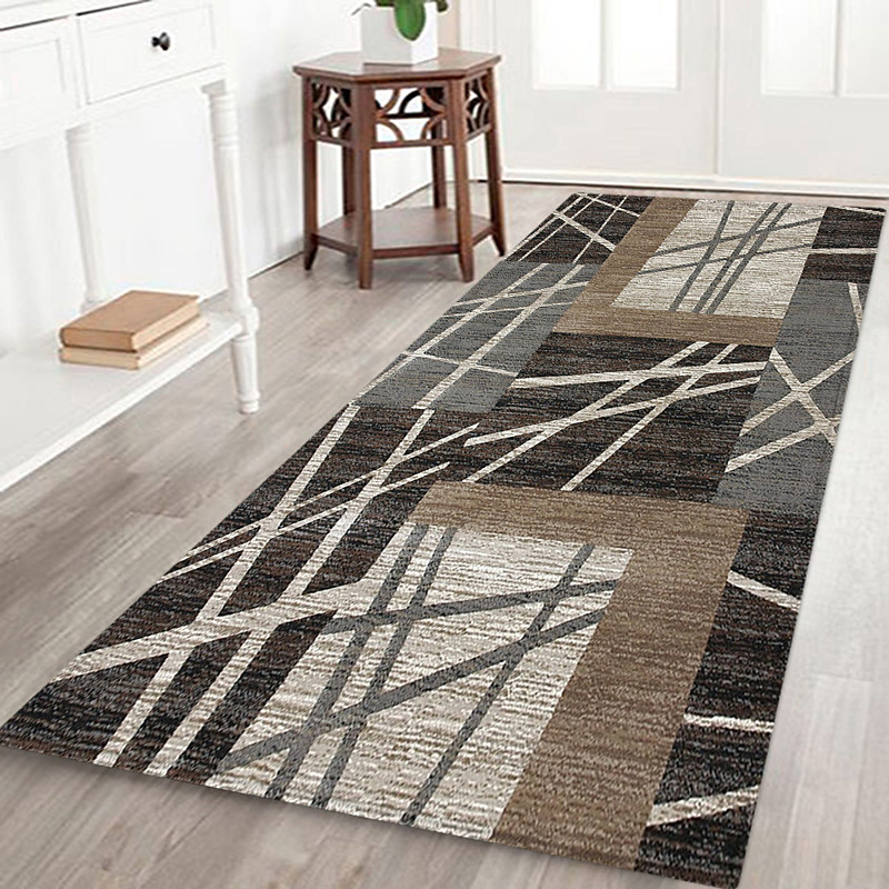 Hallway Runner Rug Geometric Art Pattern Flannel Fabric Printed Home Floor Decoration Mat Non Slip Soft Door Mat Entrance Bathroom Floor Rug