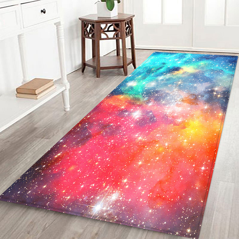 Hallway Runner Rug Starry Sky Pattern Flannel Fabric Printed Home Floor Decoration Mat Non Slip Soft Door Mat Entrance Bathroom Floor Rug