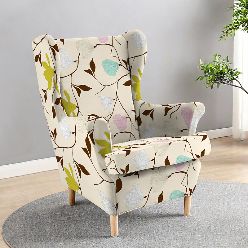 Wingback Chair Cover, Floral, Striped, or Geometric Printed Polyester Slipcover, Durable Non-Slip Chair Protector for Living Room