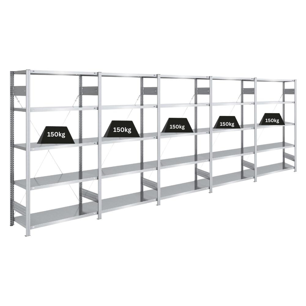 PROREGAL Schwerlastregal Silver Mamba Made in Germany | HxBxT 200x500x40cm | 5 Ebenen je 150kg Fachlast | Verzinkt