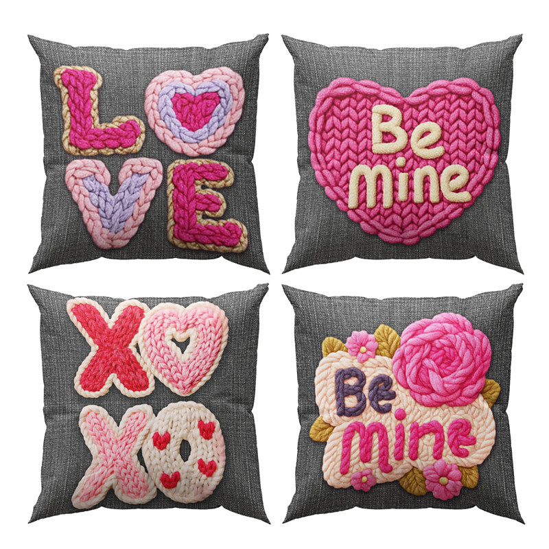 Valentine's Day 2D Flat Print Pillow Cover, LOVE BE MINE Design with Visual Knitting Effect, Adorable Valentine's Day Gift, Decorative Cushion Case for Sofa