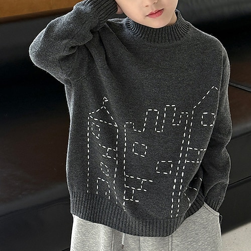 Kinder Jungen Pullover Cartoon Langarm warm halten Outdoor Mode Grau Herbst Kleidung Ab 4 Jahren