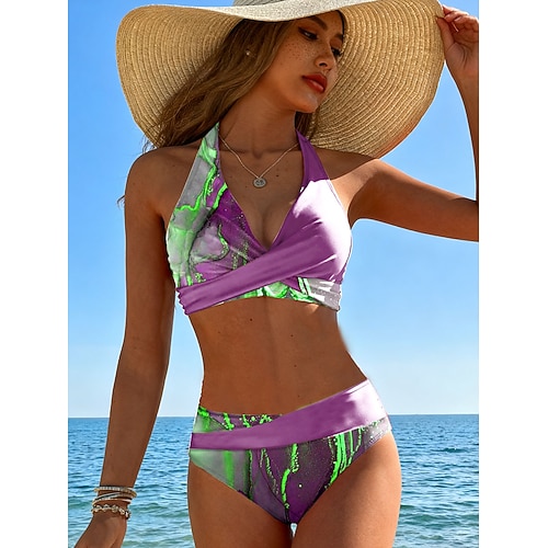 Damen Bikini 2-teiliges Badeanzug Frech Urlaub Mode Ombre Grafik V-Ausschnitt Ärmelloses Badeanzug