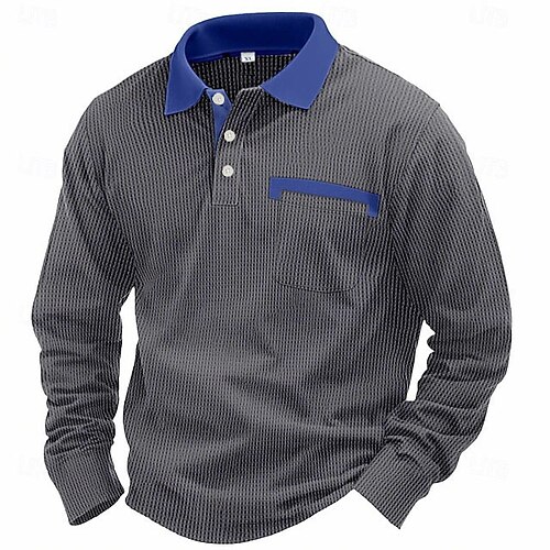 Per uomo Magliette Polo a Nido d'Ape Testurizzato Casuale Classico Manica Lunga Sport Moda Testurizzato Tasca Autunno Vestibilità regolare Blu Marrone Scuro Bianco Nero Borgogna Blu marino Magliette