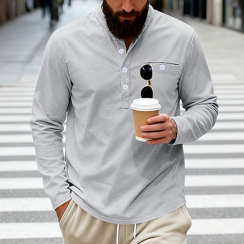 Per uomo Maglietta Maglia Henley Camicia a Maniche Lunghe Manica Lunga Henley Primavera Autunno Semplice Moda Streetwear Tempo libero Bottoni Vacanza Sport Outdoor Casuale Grigio scuro Aalbicocca