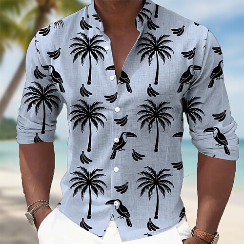 Per uomo Albero di Cocco Piante Tropicali Camicia Camicie hawaiane Camicia con colletto alla coreana Manica Lunga Hawaiano Quotidiano All'aperto Vacanza Primavera Autunno Collo alla coreana Colletto