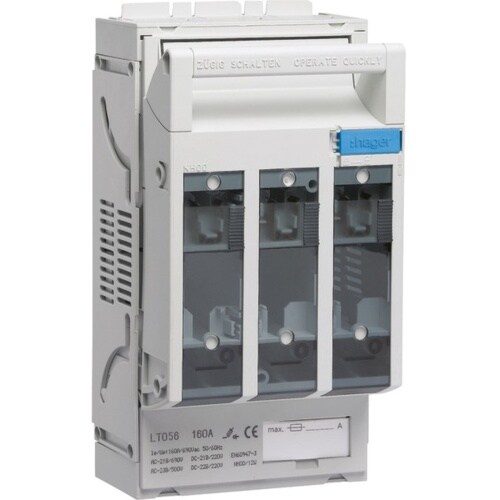 Hager Lasttrennschalter, 160 A, NH00, 3p, geeignet für Sammelschienenaufbau, IP20