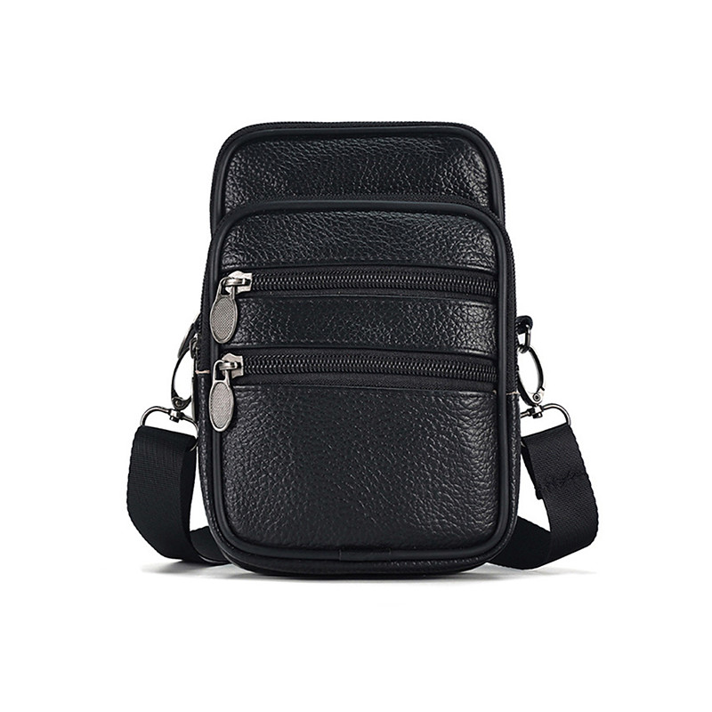 Men's Leather Crossbody Shoulder Bag with Multi-Pocket Design, Small Travel Messenger Bag and Waist Bag for Casual Daily Use and Outdoor Activities