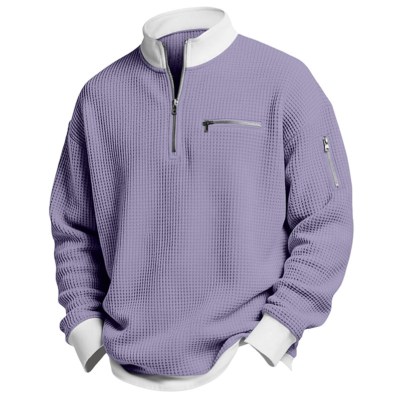 Men's Waffle T-shirt T Shirt Long Sleeve Half Zip Spring Fall Winter Solid Color Traditional / Vintage Casual Color Block Zipper Pocket Outdoor Home Sports Outdoor Light Blue Red Purple Top Tee
