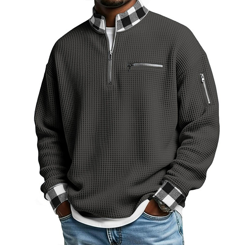 Men's Waffle T-shirt T Shirt Long Sleeve Half Zip Fall Winter Solid Color Traditional / Vintage Casual Check Pattern Color Block Zipper Pocket Casual Home Outdoor Light Blue Light Green Red Top Tee