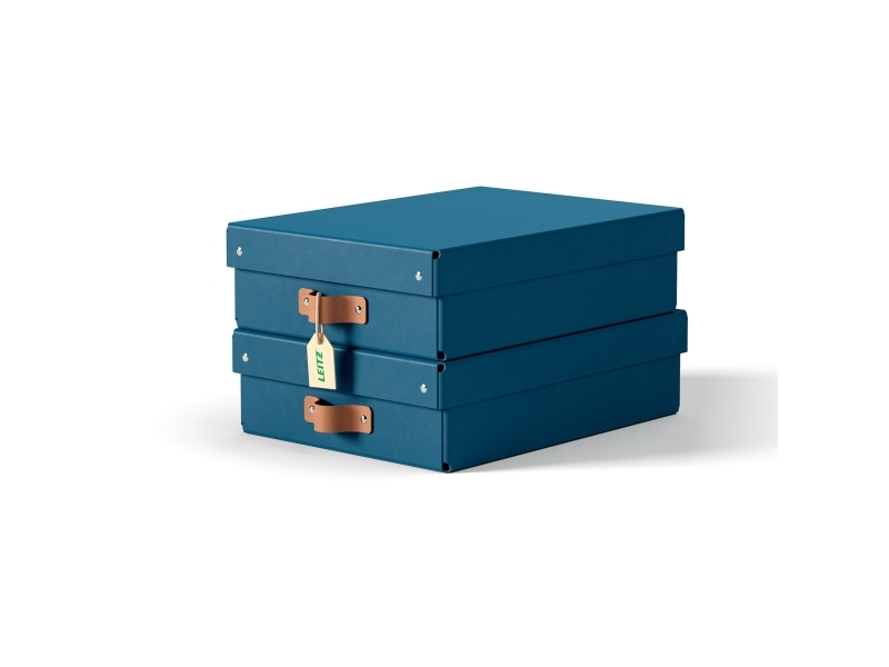 Leitz Puro oppbevaringsboks med lokk, middels lav, 8L, 100 % resirkulert kartong, pakke med 2, Blå, Kartong, 8 l, 270 mm, 370 mm, 100 mm