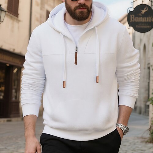 Per uomo Felpa con cappuccio Felpa con cappuccio e zip corta Felpa con cappuccio in pile Aalbicocca Nero Bianco Vino Rosso Con Cappuccio Mezza zip Semplice Tasca Sport Outdoor Quotidiano Ferie