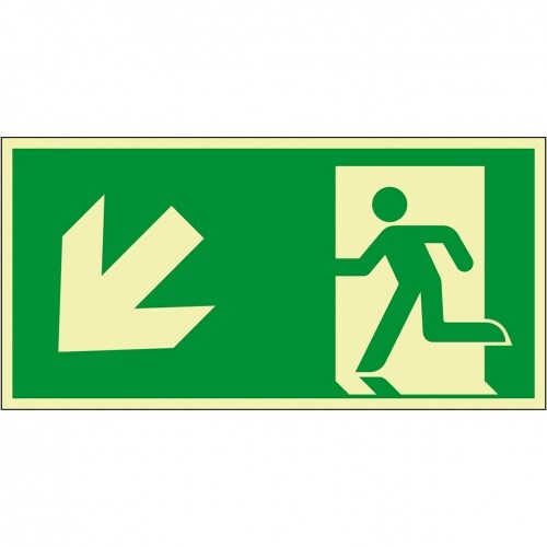 Schild I PERMALIGHT power langnachleuchtend Rettungszeichen Rettungsweg links abwärts, Aluminium, 300x150mm, ASR ISO 7010 E001