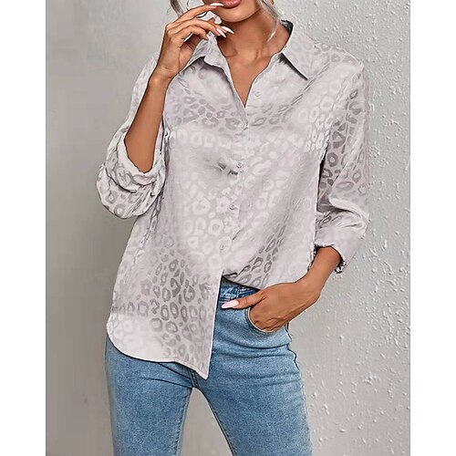 Per donna Camicia Blusa Leopardo Elegante Casual Manica Lunga Colletto a Camicia Top Regolari Ferie Uscire Bottoni Rosa Vino Blu Reale Azzurro cielo Cachi Primavera Autunno