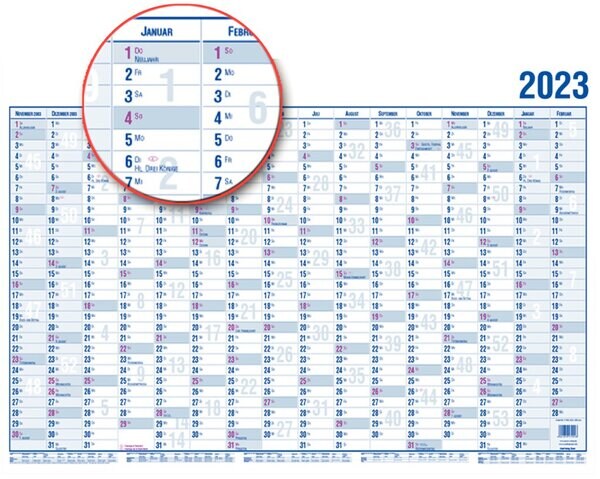 GÜSS Wandplaner DIN A1, 99 x 60 cm, 16 Monate, inkl. Schulferienübersicht, Sonn- und Feiertage geraster, im Versandrohr