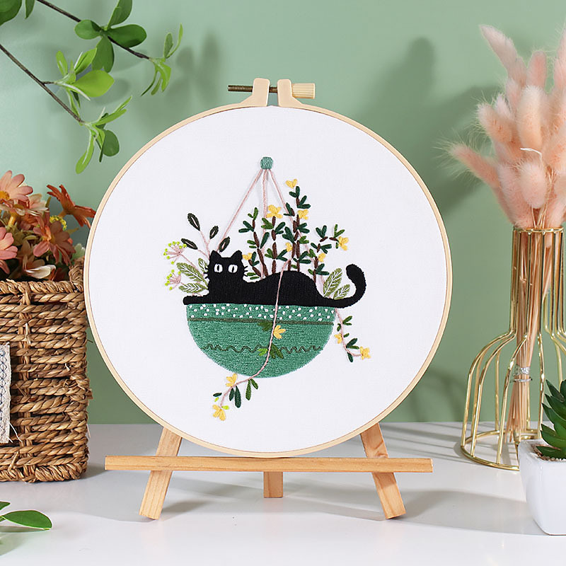 Cute Cat Embroidery Kit for Adults Beginners, Stamped Cross Stitch Starter Kits Include Embroidery Needlepoint Cloth Hoops Needles Threads and Instruction