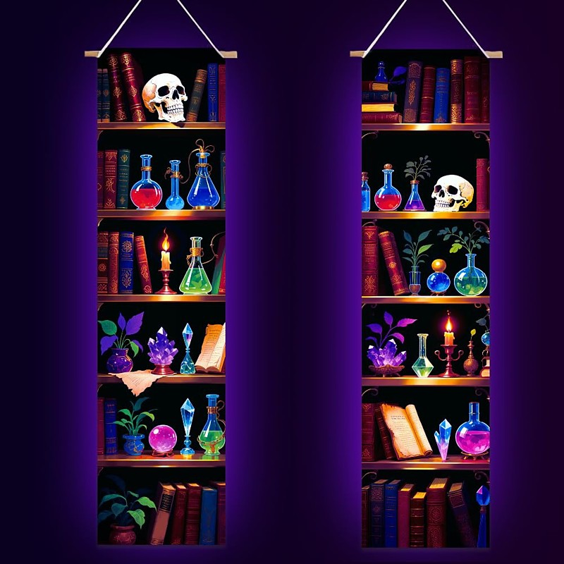 2 Pcs Black Light Tapestry Magic Bookshelf Trippy Blacklight Tapestry Art Wall Decor UV Reactive Blacklight Posters Aesthetic Room Wall Hanging Backdrop for Bedroom Home Decoration