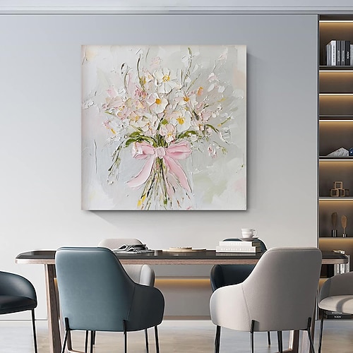 Dipinto a olio fatto a mano su tela, decorazione da parete, moderno dipinto astratto con coltello, fiori per soggiorno, arredamento per la casa, dipinto appeso su telaio teso/dipinto arrotolato senza