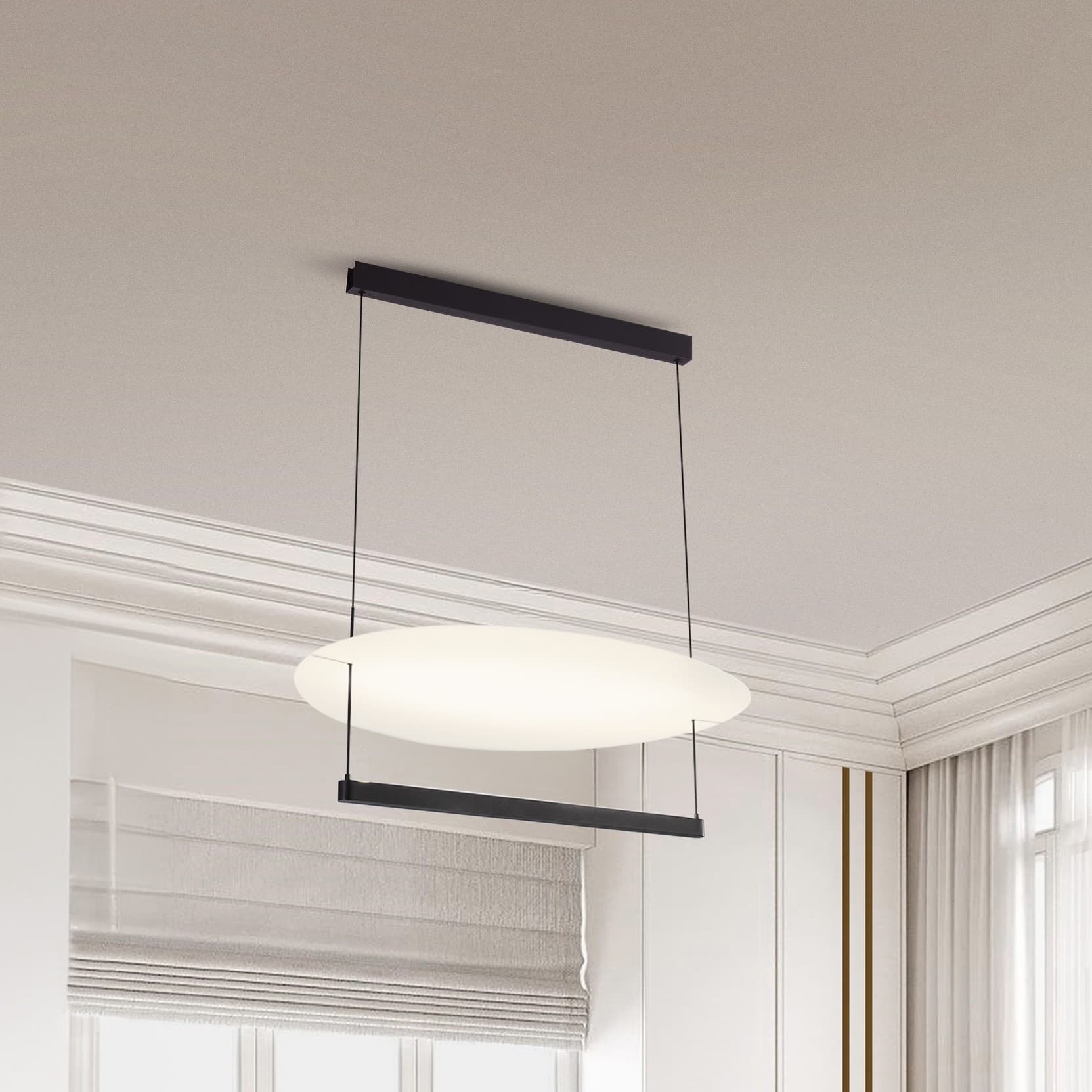 Nova Luce Diona - hanglamp - Ø 80 x 160 cm - 55W dimbare LED incl. - zandzwart en wit