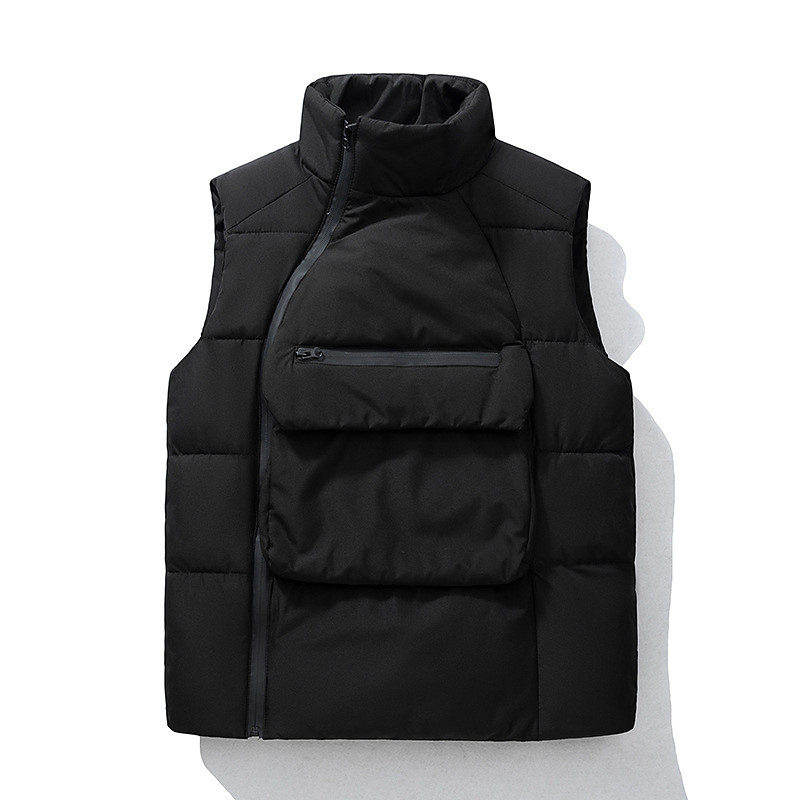 Men's Puffer Vest Vest Gilet Vacation Daily Date Fashion Casual Winter Pocket Polyester Warm Comfortable Solid Color Zipper Stand Collar Regular Fit Black Gray Vest