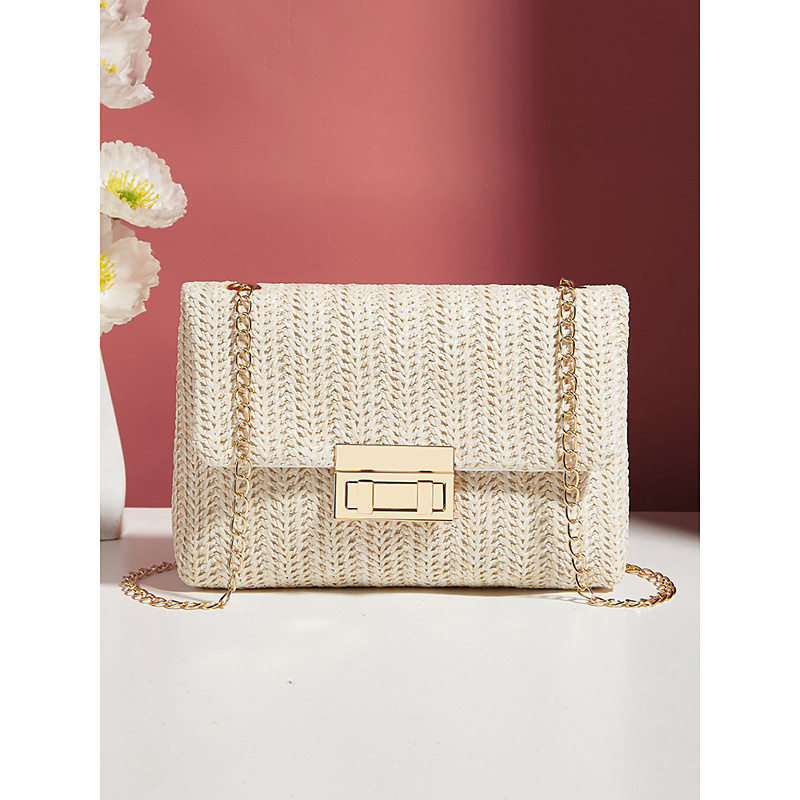 Women's Rainbow Woven Shoulder Bag – Colorful Crochet Crossbody Purse with Gold Chain Strap for Summer, Beach and Vacation Outfits