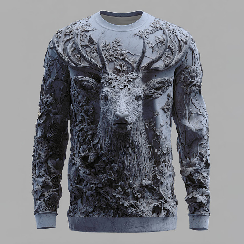 Men's Optical Illusion 3D Deer Sweatshirt Casual Long Sleeve Crew Neck Vacation Party Gift White Blue Brown Green Crewneck 3D All Seasons Designer S M L XL XXL XXXL