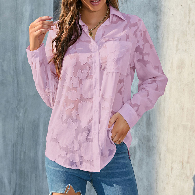 Women's Shirt Blouse Chiffon Tops Floral Elegant Stylish Long Sleeve Shirt Collar Regular Tops Holiday Going out Pocket 3D Print Buttons Black White Yellow Pink Brown Spring Fall