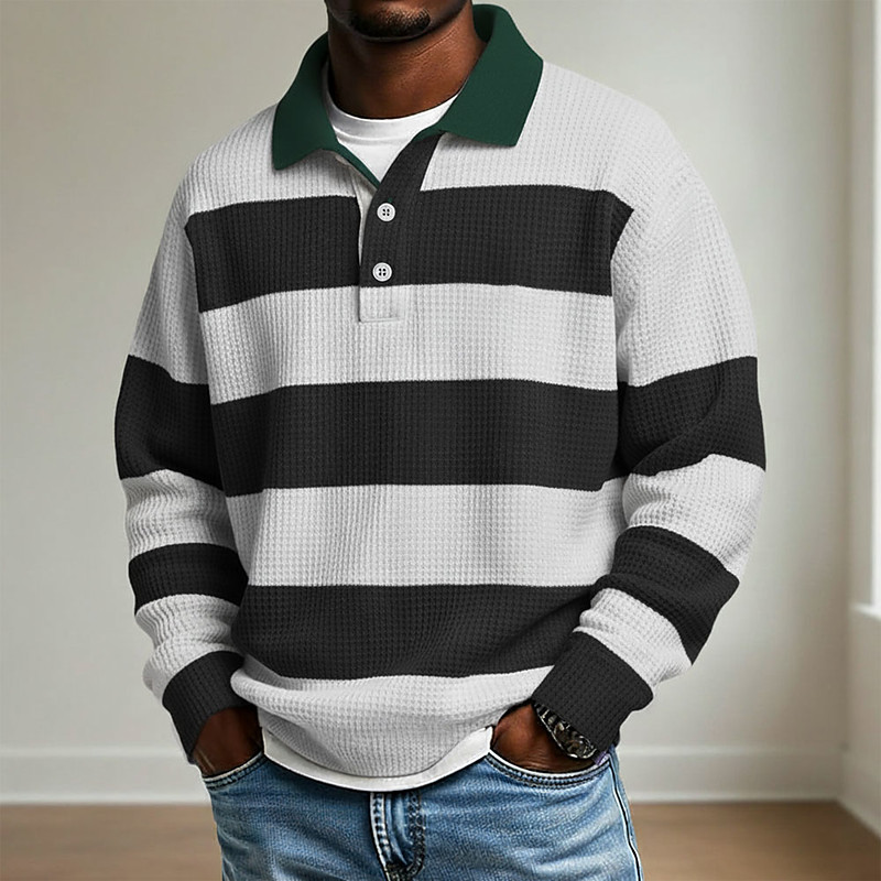 Men's Stripes Rugby Polo Cable Knit Polo Long Sleeve Polo Shirts Collared Shirts Casual Outdoor Athleisure 3D Print Spring Fall Winter White
