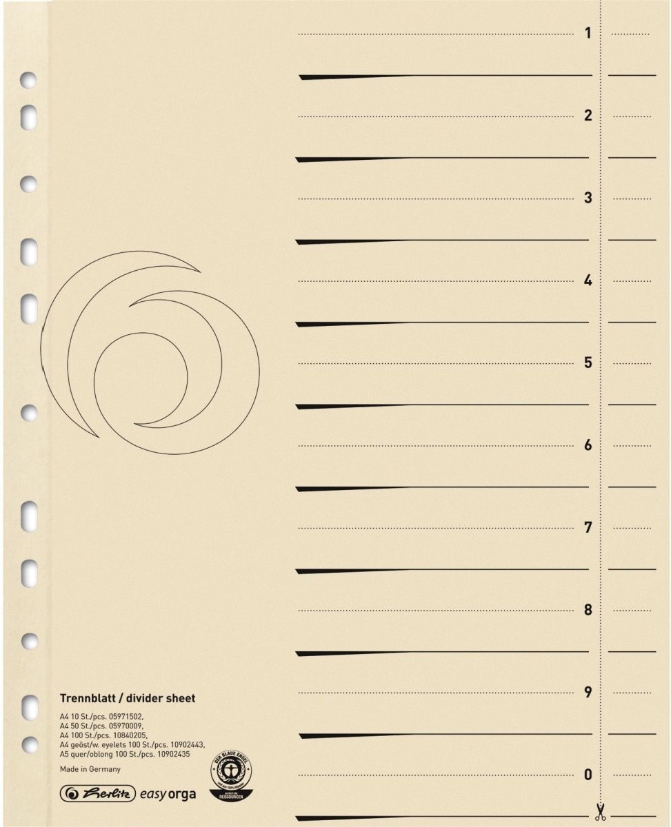 herlitz Trennblatt A4 chamois VE=16x50 Stück