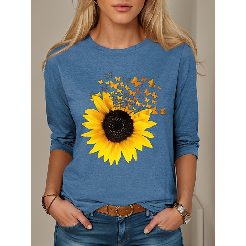 Women's T Shirt Floral Graphic Vintage Stylish Casual Long Sleeve Crew Neck Regular Tops Daily Print Black Blue Gray Spring Fall Winter