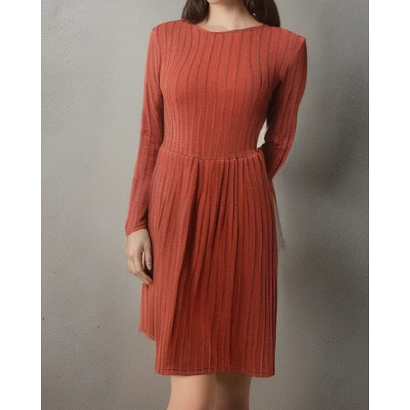 Women's Mini Dress Casual Dress Ruched Dress Modern Daily Holiday Going out Regular Fit Plain Long Sleeve Crew Neck Orange Fall Winter